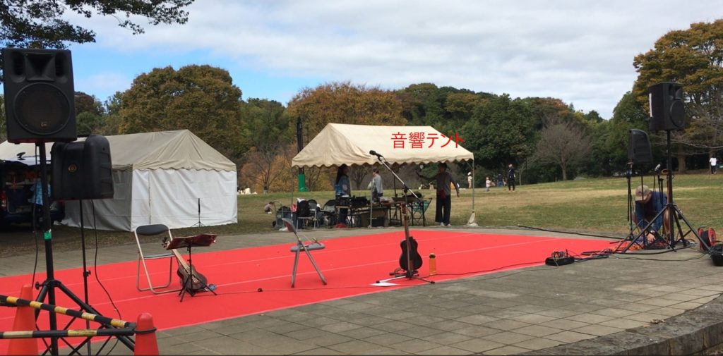 音響調整作業の妨げになりますので音響テント(下の写真中央テント)へ滞在、私語はご遠慮ください。